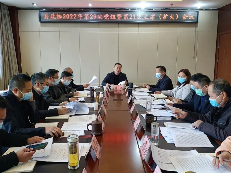 12月12日,安岳县政协召开2022年第29次党组暨第21次主席(扩大)会议。县政协党组书记、主席刘云主持会议。县政协副主席游军、霍顺祥、蒋凤出席会议。
