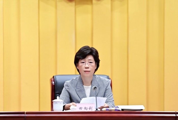 图为田向利讲话。本报记者 姜寒冬 摄