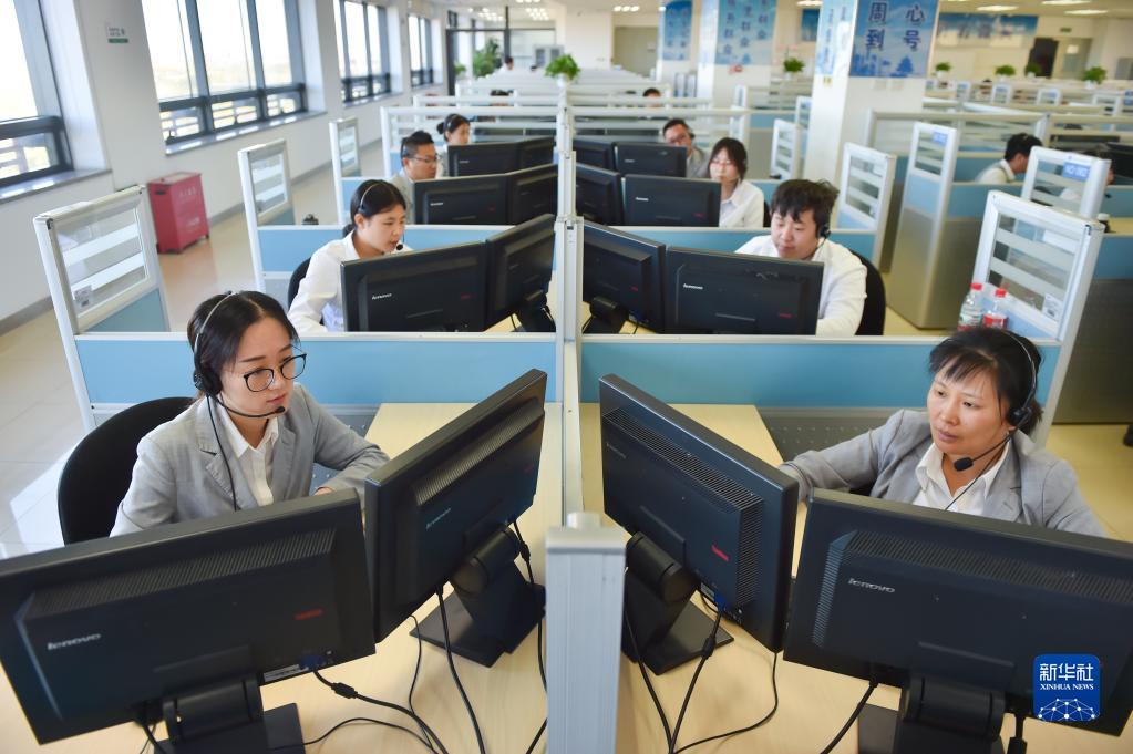 在位于北京亦庄的12345市民热线话务大厅,工作人员接听热线电话(2019年11月13日摄)。新华社记者 彭子洋 摄
