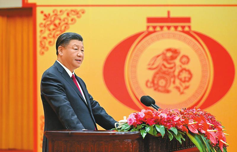 1月20日,中共中央、国务院在北京人民大会堂举行2023年春节团拜会。中共中央总书记、国家主席、中央军委主席习近平发表讲话。 新华社记者 李学仁 摄
