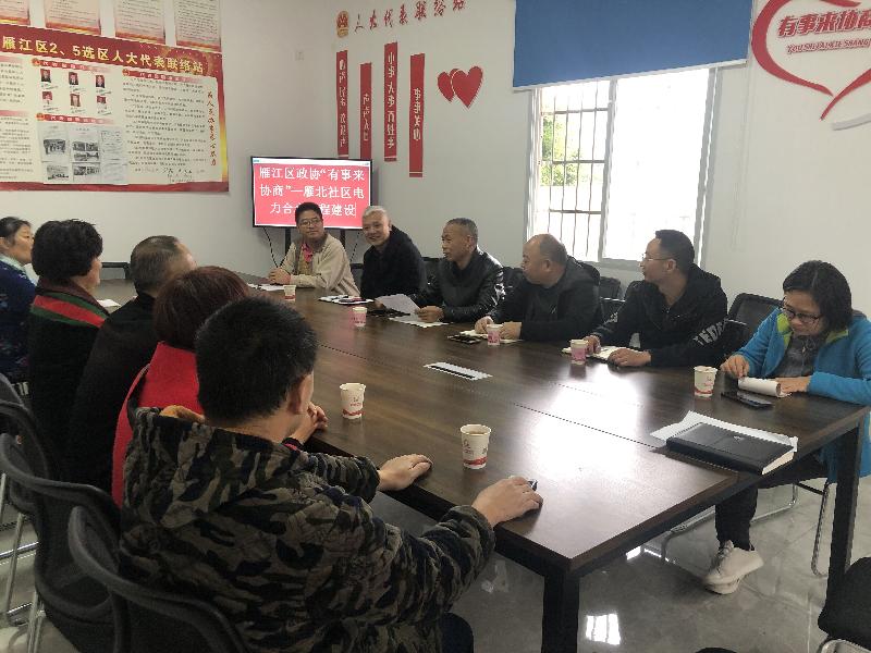 随后,区政协教科卫体委在雁北社区“有事来协商”工作站召开了调研座谈会。会上,雁北社区党委书记详细介绍了昌阳小区用电现状及存在的困难和问题,经科信、住建等部门负责同志就昌阳小区合表工程、老旧小区改造工程启动实施等事项作了说明解释,全体参会人员围绕“推进合表改造 高效服务民生”主题,就昌阳小区电力合表改造何时改、怎么改等事项进行了充分讨论和互动协商。